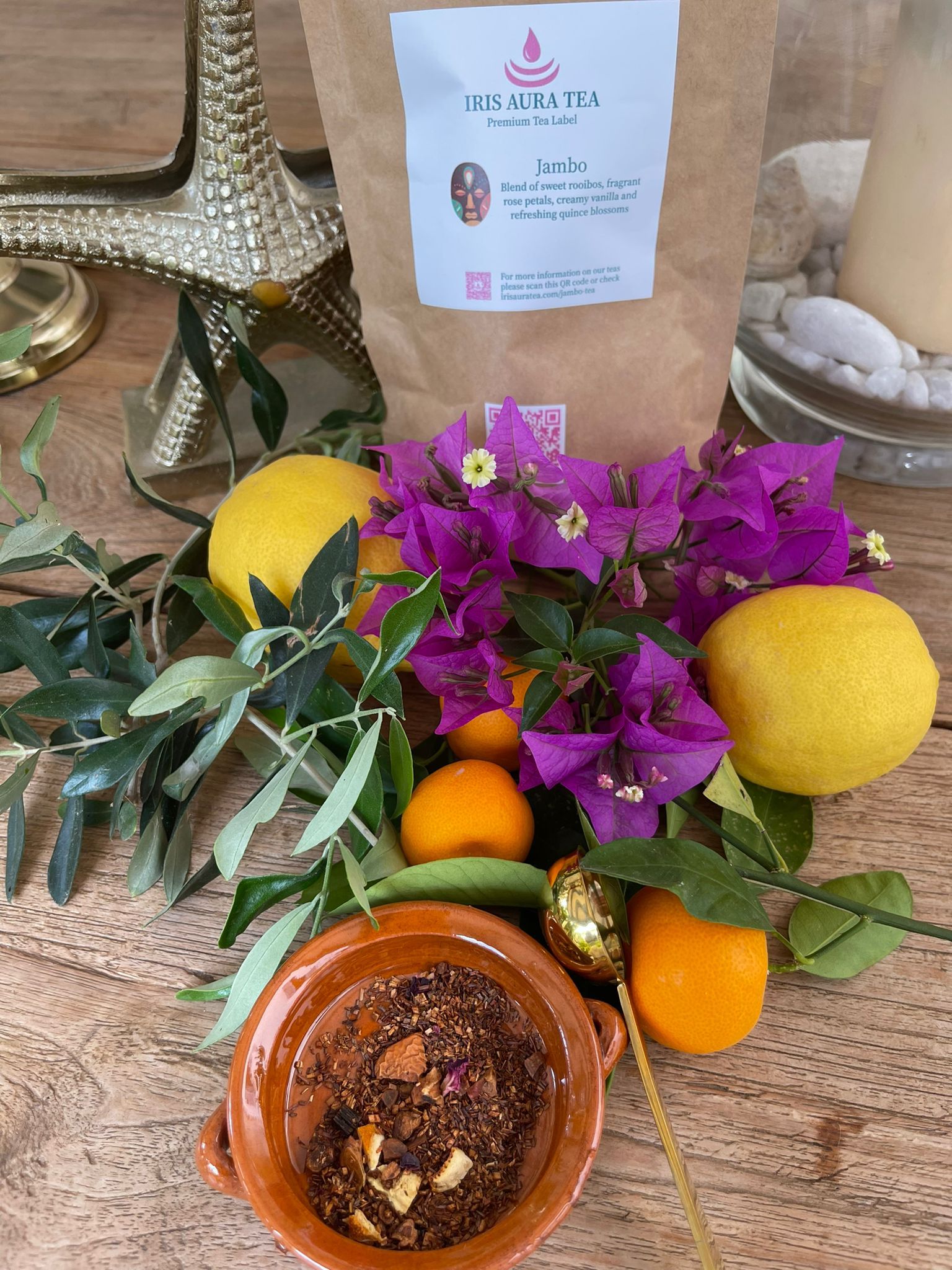 Our rooibos tea is characterized by its natural and gentle taste. The sweet rooibos forms the basis for this blend and gives the tea a pleasant depth. The rose petals bring a delicate fragrance and a subtle floral note, while the lemon notes give the tea a refreshing and lively nuance. The creamy vanilla rounds off the taste profile and provides a pleasant and slightly sweet note. The quince blossoms give the tea a fruity and refreshing component.