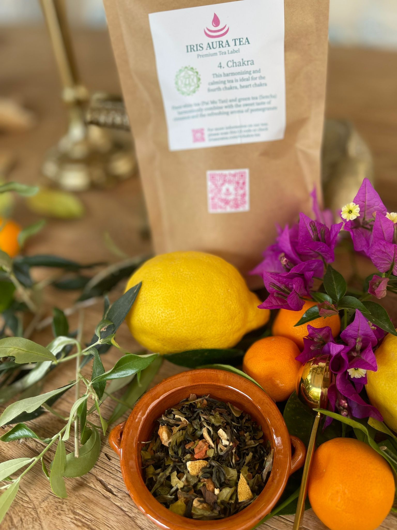 Déjate seducir por este viaje sensual y siente el poder curativo del chakra del corazón con cada sorbo de esta deliciosa mezcla de infusiónblanco y verde, canela y granada.